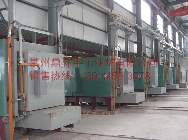 用于35、45、高鉻、高錳鋼鑄件、灰口鑄鐵件、球墨鑄鐵件、軋輥、油管 、鋼球、破碎機(jī)錘頭、耐磨襯板、大型焊接件淬火、退火、回火以及各種機(jī)械零件熱處理。該電阻爐是由電動臺車、爐殼、爐襯、爐架、電動爐門、自動控制系統(tǒng)等組成。