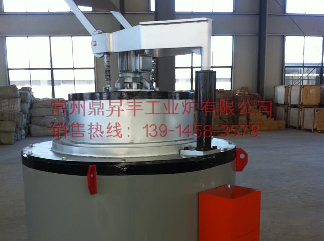 井式回火爐結構,外殼由鋼板和型鋼制成圓柱形爐體。爐蓋內面采用不銹鋼板制成。爐襯采用輕質節能微孔耐火保溫磚砌筑。爐襯與爐殼夾層置硅酸鋁纖維棉保溫,間隙填充膨脹保溫粉。電阻絲采用高電阻合金絲繞成螺旋狀安裝在爐膛的擱絲磚上。爐膛內放置有不銹鋼裝料筐。爐蓋采用手動扛桿升降。為了使工件均勻加熱,在爐蓋上安裝有耐熱不銹鋼軸和風葉制成的熱風循環風機,工件在加熱過程中,熱空氣在回火爐內上下循環以保證工件均勻加熱。為保證操作在升降機構附近裝有限位開關,此開關與回火爐控制柜電源聯鎖,爐蓋關閉時(工作時)接通電源。當爐蓋開啟時限位開關即切斷控制電源,因此加熱元件的電源同時切斷,以保證操作。井式回火爐出廠時配套自動控溫柜,熱電偶
